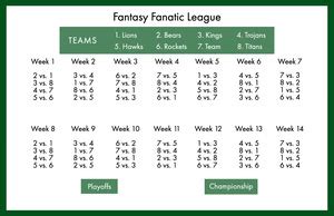 Web find free league schedules for different team sizes and formats, with or without divisions. Program to automatically create your custom leagues. Also get access to fantasy football rankings,.
